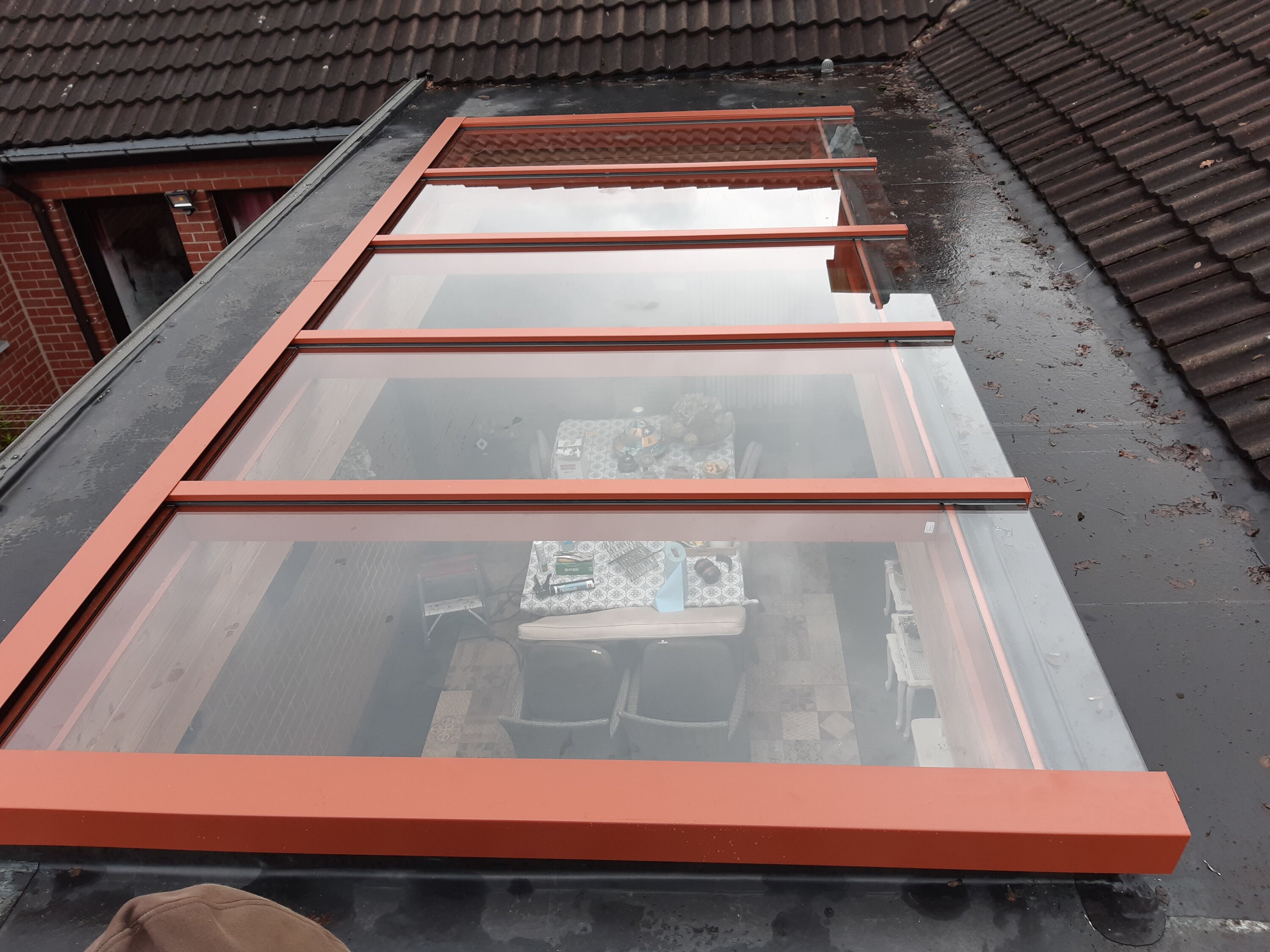 Terrasoverkapping met aluminium lichtstraat.